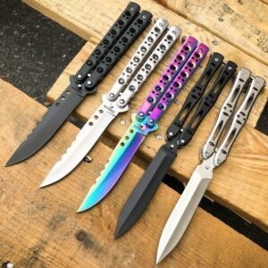 Dieses Balisong ist scharf und hat jede Menge Charakter. Die 9 Zoll lange Klinge aus rostfreiem Stahl ist perfekt für den täglichen Gebrauch. Der Riegel verriegelt die Griffe sowohl im offenen als auch im geschlossenen Zustand, um ein versehentliches Öffnen oder Schließen zu verhindern. Leicht und witzig für Tricks und Flips.